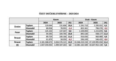OSD Başkanı Cengiz Eroldu Dernek olarak 2025 yılı öngörülerini, “Dünyaya baktığımız zaman öncelikle küreselde çok az miktarda bir azalma veya paralel de diyebiliriz. Ancak yine dünyada otomotiv imalatında 100 milyonun altında bir rakam bekleniyor. Avrupa’da ise biraz daha zayıflama öngörüsü var. Burada da 13 milyonlardan 12 milyonlara, daha sonra da, daha önce 14 milyon adet olan toplam talebin 13 milyonlara gevşeyeceği yönünde diyebilirim. İki tehdit var, bir tanesi talebin azalması bir tanesi de Çinli üreticilerin Avrupa’da daha fazla yer almaya çalışmaları. Buradan tabii Türkiye pazarına da bu fazla kapasitenin gelmesi söz konusu. Bunu aslında iç pazarda ilk 6 ayda da görüyoruz. Avrupalı birçok markanın Türkiye’deki satışlarında şiddetli artışlar gözlemleniyor. Bu da tabii Avrupa’daki kapasite fazlasının bir sonucu” sözleriyle açıkladı.