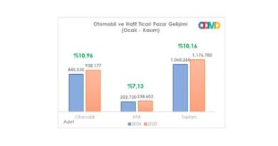 ODMD 2025 yılı Ocak-Mart dönemine ait otomobil ve hafif ticari araç pazarına ilişkin detayların yer aldığı raporu açıkladı. Türkiye otomobil ve hafif ticari araç toplam pazarı, 2025 yılı Ocak-Mart döneminde bir önceki yılın aynı dönemine göre %6,5 oranında azalarak 276.284 adet olarak gerçekleşti. Otomobil satışları, 2025 yılı Ocak-Mart döneminde geçen yıla göre %4,1 oranında azalarak 223.793 adet, hafif ticari araç pazarı ise %15,5 azalarak 52.491 adet oldu.